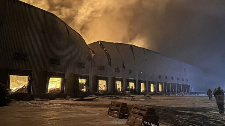 Тем временем на месте предыдущих прилетов продолжается сильный пожар.