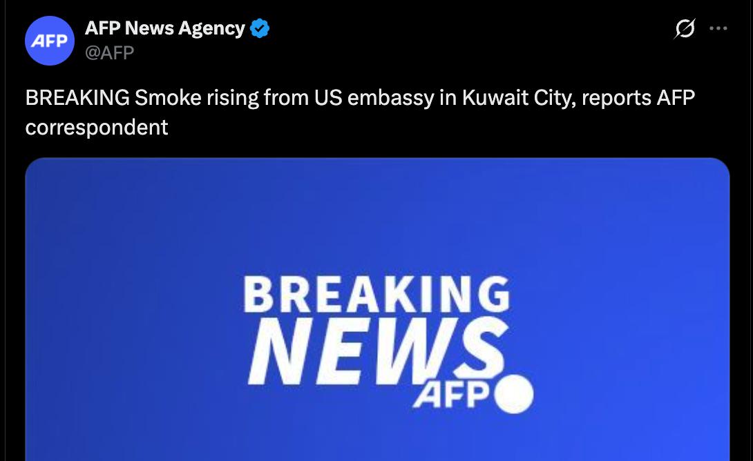 8.24 Над посольством США в Кувейте поднимается дым, передает AFP.