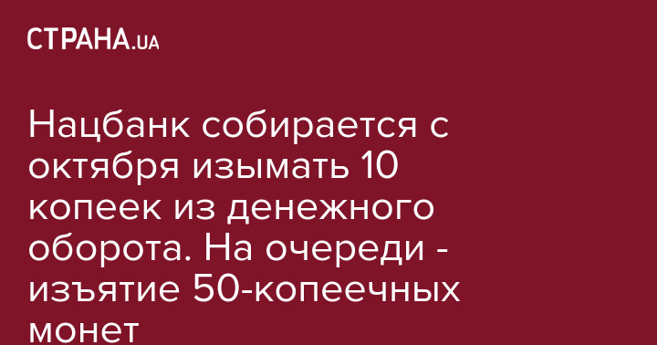 Нацбанк збирається з жовтня вилучати 10 копійок із грошового обігу. На черзі – вилучення 50-копійчаних монет