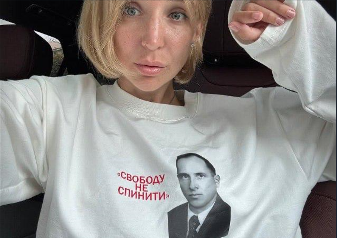 Скандальний український блогер Олена Мандзюк приїхала до Польщі у кофті із зображенням Степана Бандери.