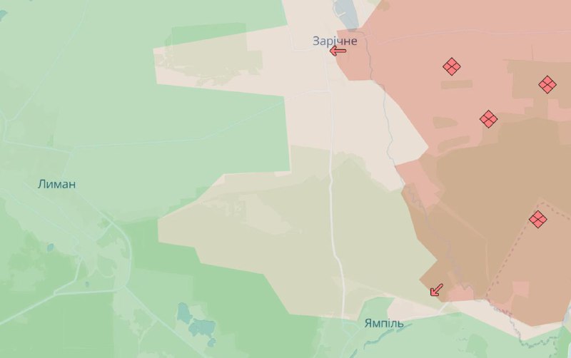 Український військовий телеграм-канал повідомляє, що росіяни продовжують накопичувати піхоту в лісах між Ямполем, Лиманом та Зарічним, просочуючись між позиціями ЗСУ.