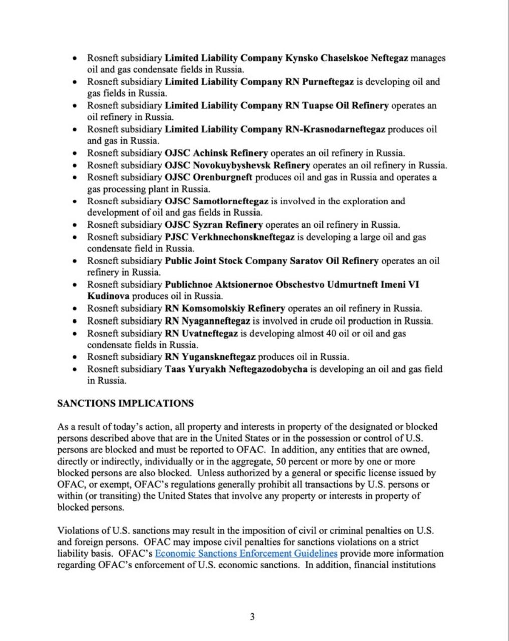 Таким чином, під дію указу підпадає весь вертикальний ланцюжок виробництва та експорту нафти та нафтопродуктів цих компаній.