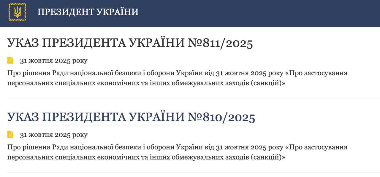 Це випливає із указів, опублікованих на сайті президента.