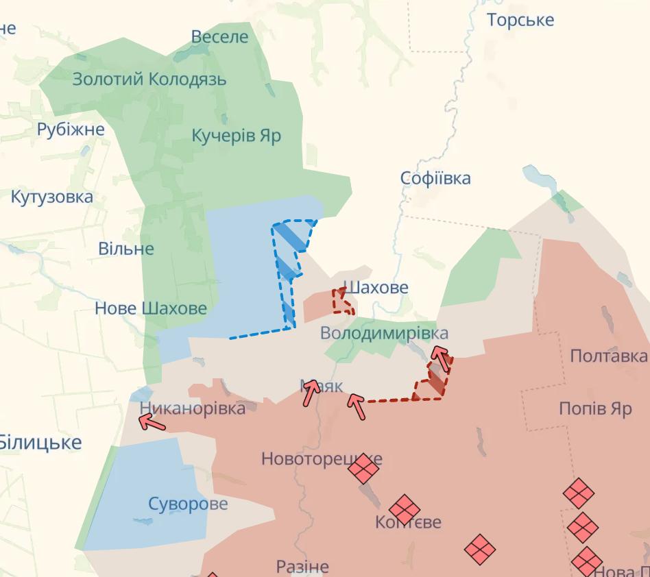 Армія РФ у свою чергу просунулась у Дніпропетровській області на південь від Покровського.