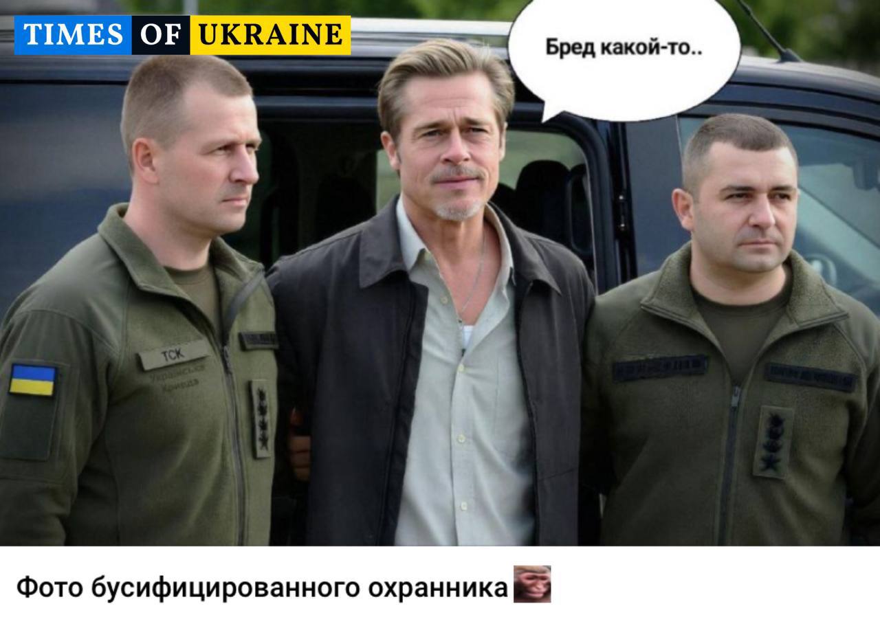 Також з'явилися створені ІІ меми, на яких у ролі затриманого військкомами охоронця Джолі виступає її колишній чоловік, відомий актор Бред Пітт.