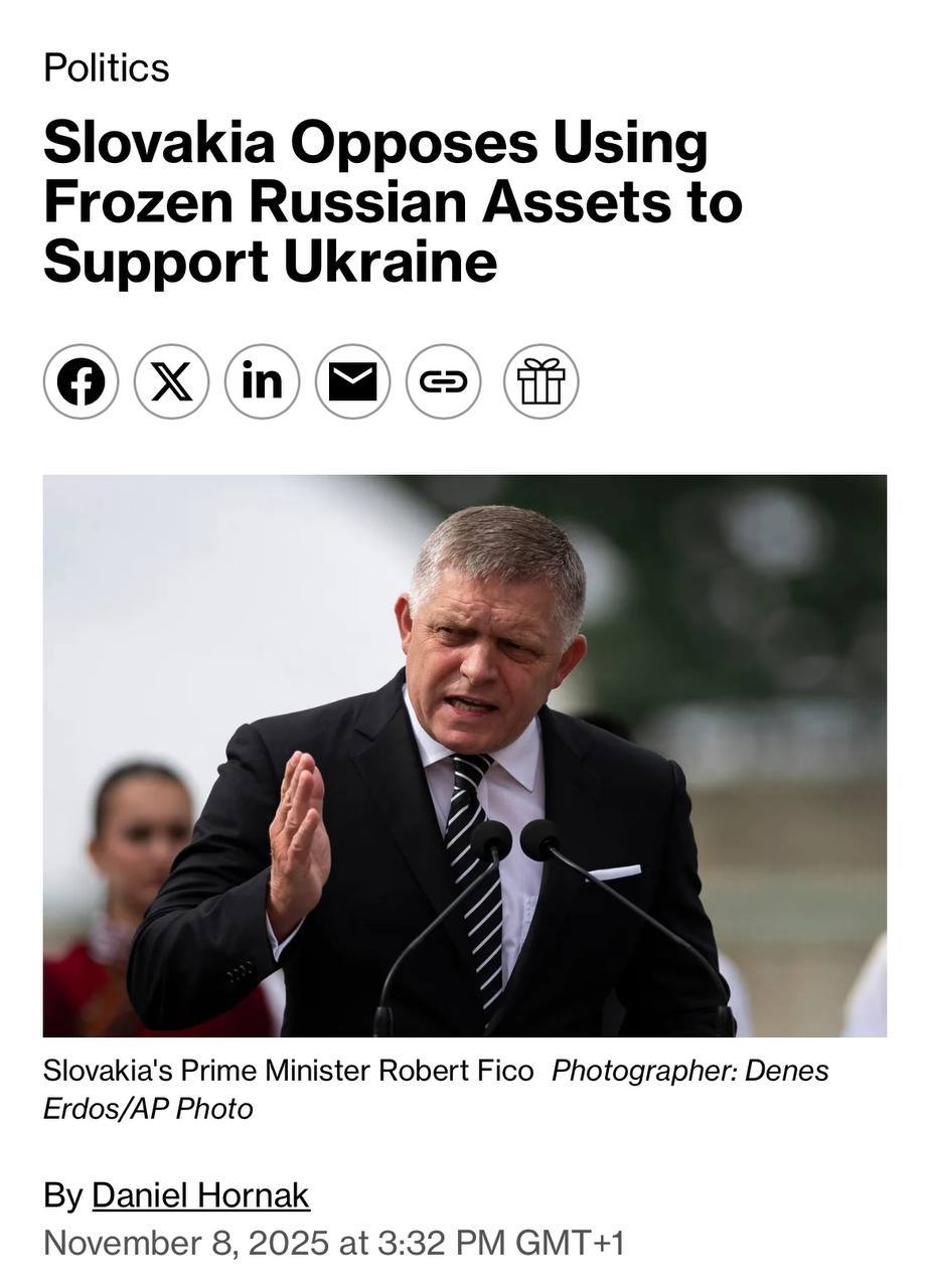 "Словаччина не братиме участі в будь-яких юридичних чи фінансових схемах щодо вилучення заморожених активів, якщо ці кошти будуть витрачені на військові витрати в Україні. Ми хочемо закінчити війну або підігріваємо її? Ми збираємося надати Україні 140 мільярдів євро, щоб війна продовжувалася. Що це означає? Що війна продовжиться?"