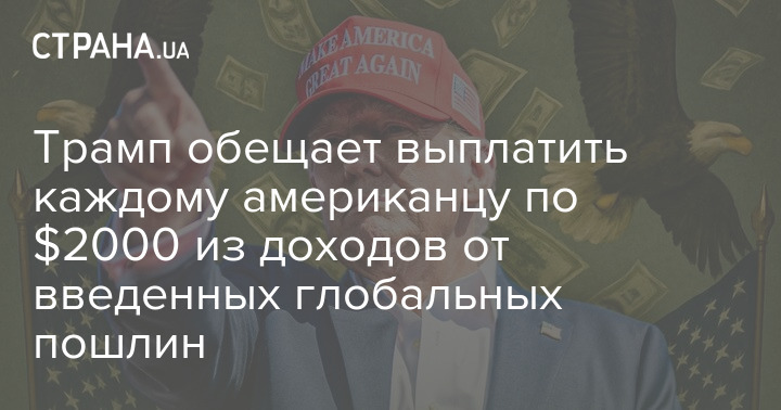 Президент США Дональд Трамп пообіцяв виплатити кожному американцю по дві тисячі доларів "дивідендів" - з надходжень від мит, які Сполучені Штати запровадили проти інших країн.