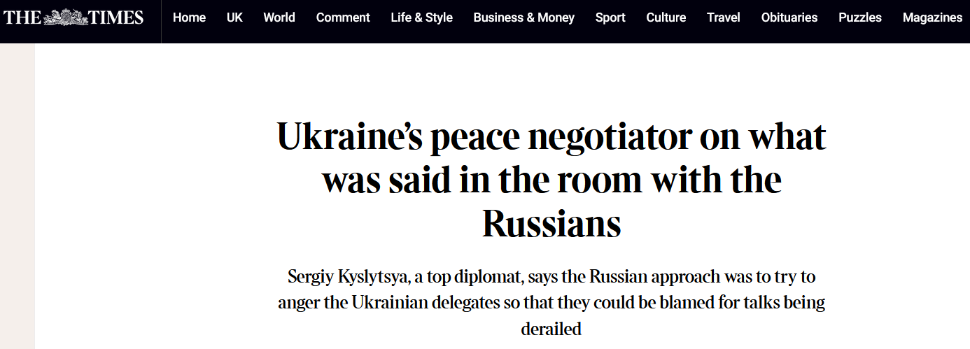 Про це заявив перший заступник глави МЗС України Сергій Кислиця у коментарі виданню The Times.