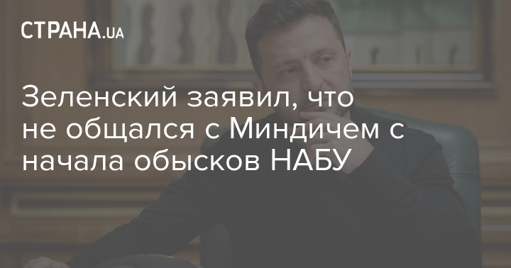 Президент України Володимир Зеленський запевняє, що не спілкувався з підприємцем Тимуром Міндічем, проти якого він запровадив санкції з моменту оголошення про початок розслідування корупції.