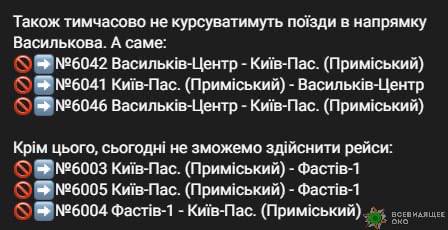 Під час нічної атаки повністю зруйновано виявився залізничний вокзал у місті Фастів Київської області. Удар також було здійснено за депо.