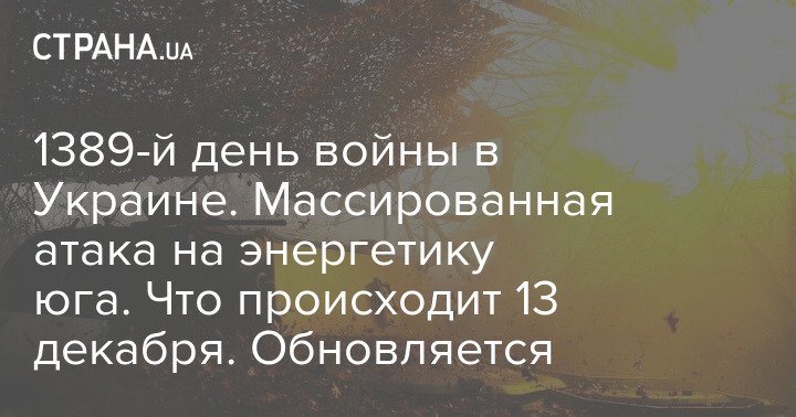 У суботу, 13 грудня, в Україні триває 1389-й день війни з Росією.