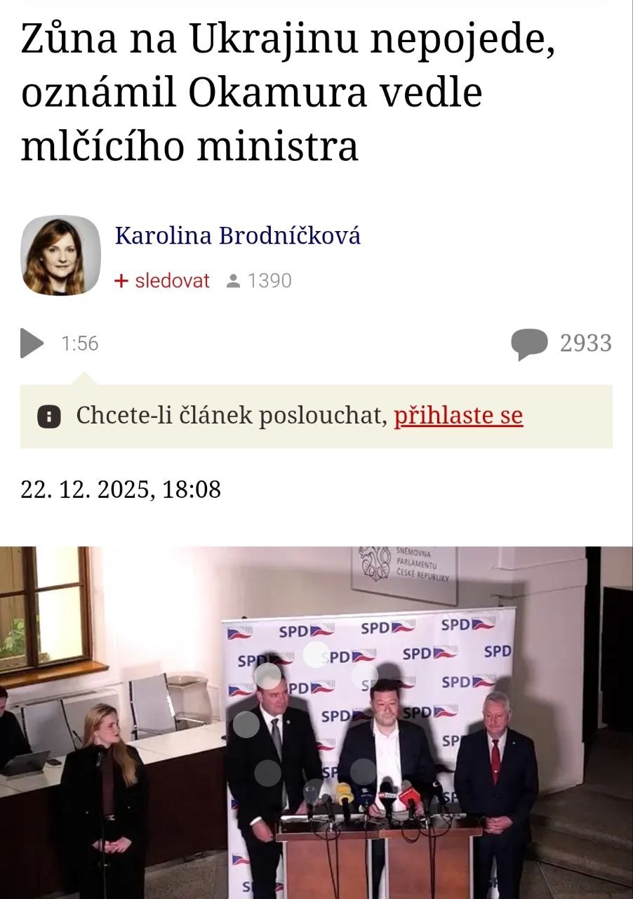 Після цього один із лідерів коаліції Томіо Окамура на прес-конференції у присутності міністра заявив, що той "не прийняв запрошення відвідати Україну".