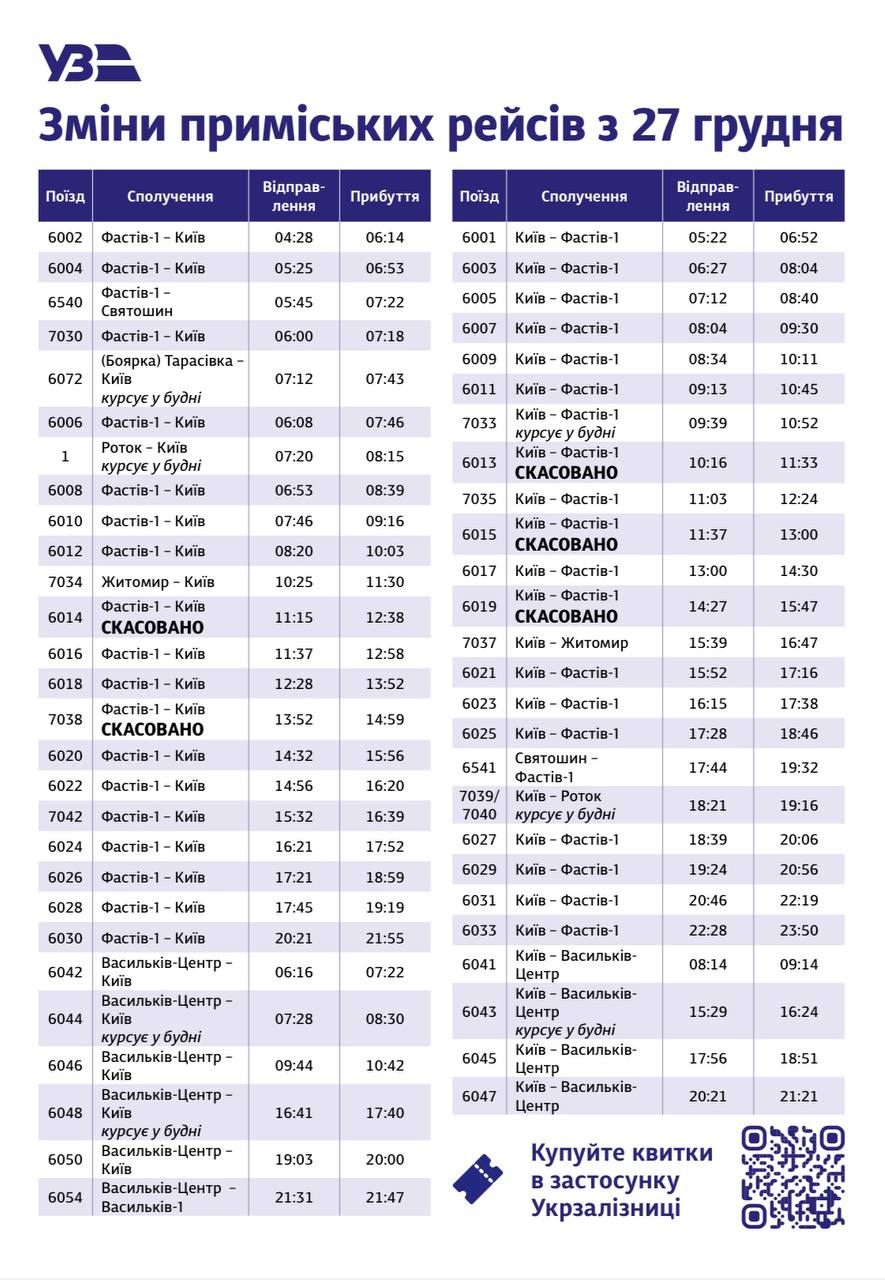 "Укрзалізниця" через атаку РФ на Київську область внесла зміни до низки приміських рейсів.