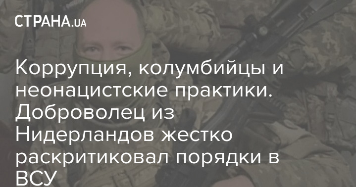 Нідерландський доброволець, який воював в Україні, жорстко розкритикував порядки у ЗСУ, розповівши про корупцію, колумбійські найманці та неонацистські практики.