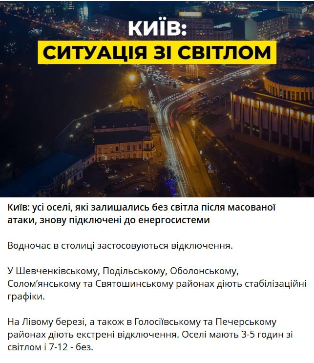 18.42 ДПЕК заявляє, що у Києві всі будинки знову підключені до енергосистеми.