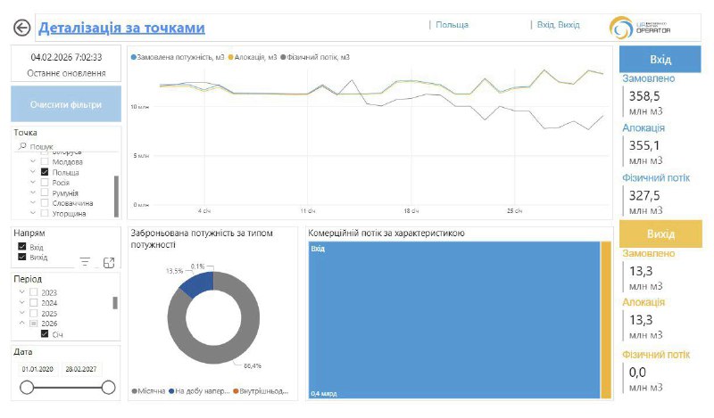 У січні експорт природного газу з України до Польщі склав 13,3 млн кубометрів, до Угорщини - 1,3 млн. З початку лютого обсяги поставок до Європи збільшилися: лише за 2-3 лютого експорт до Польщі склав 5 млн кубометрів.