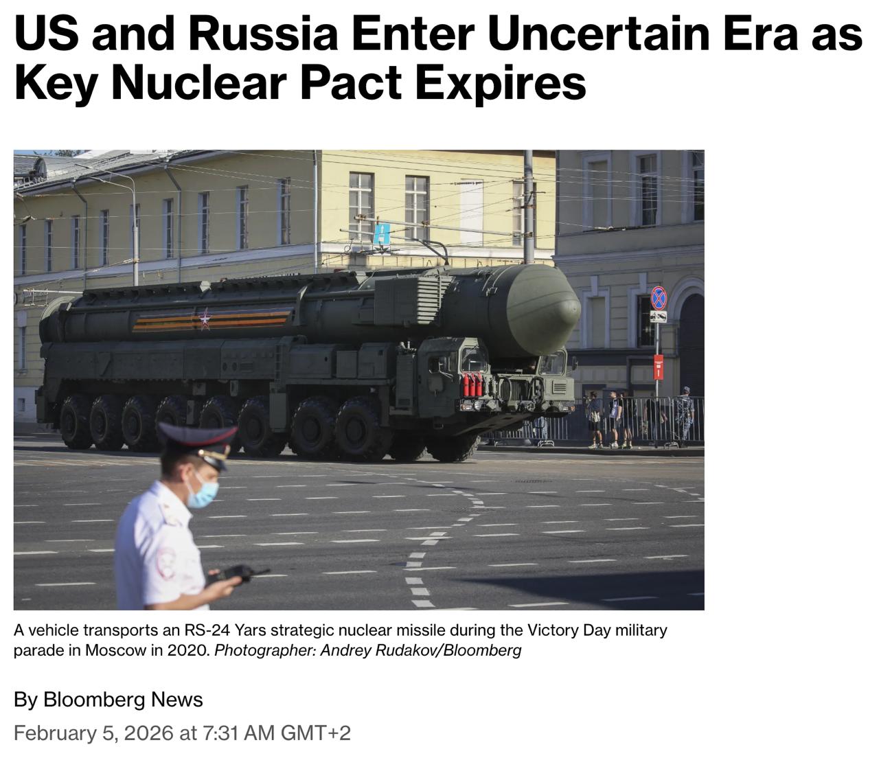 США та Росія вступають в епоху невизначеності та ризику нових перегонів озброєнь вперше з 1980-х у зв'язку із закінченням терміну Договору про стратегічні наступальні озброєння (ДСНО).