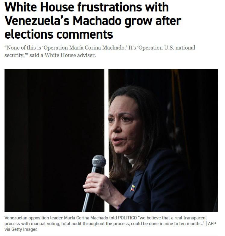 За їхніми словами, особливе роздратування в американських чиновників викликали слова Марії Мачадо про те, що вибори у Венесуелі відбудуться протягом року, тоді як реалістичніший термін становить близько двадцяти чотирьох місяців.