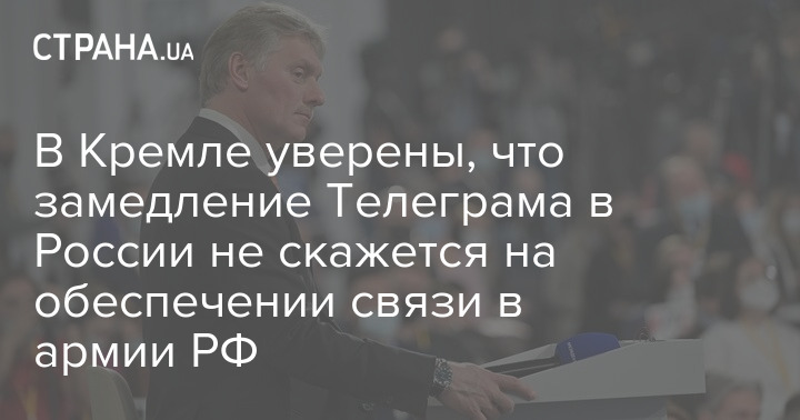 Речник президента РФ також висловився з приводу чуток про те, що відключення Телеграма залишить російську армію в Україні без військового зв'язку.