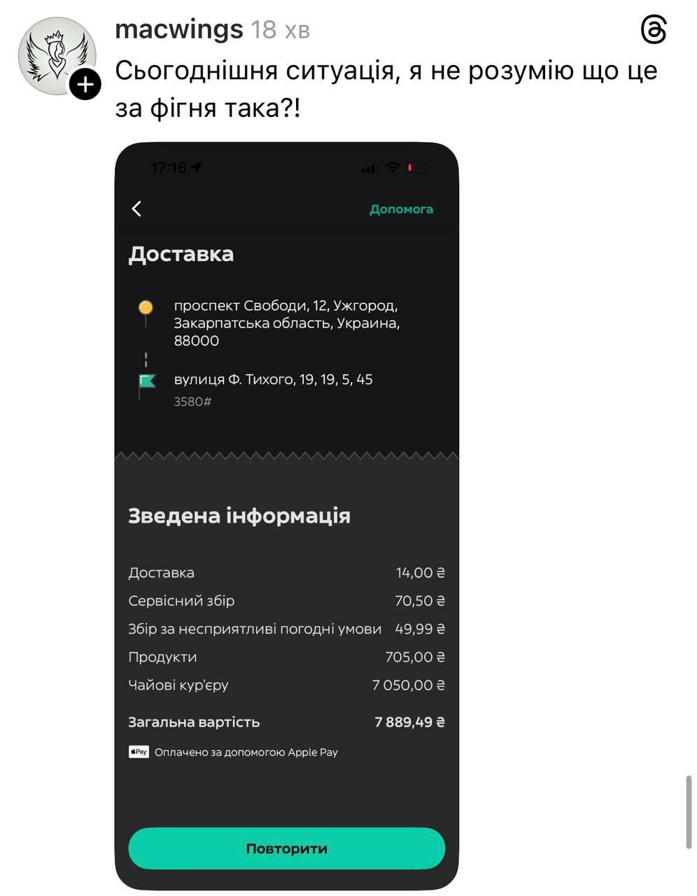 "У мене зняли з картки 3848 чайових кур'єру. Як, звідки це можливо, при цьому сума замовлення 950 грн", - коментує ще один постраждалий.