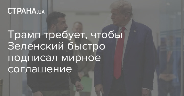 Президент США Дональд Трамп закликав українського президента Володимира Зеленського швидко підписати мирну угоду.