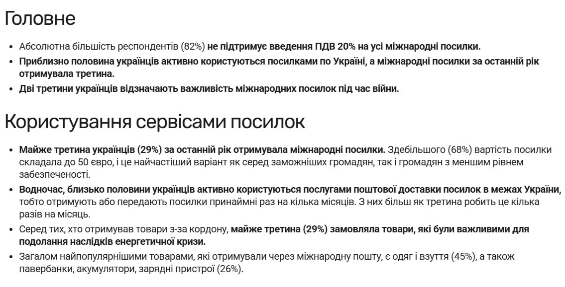 Більшість українців (82%) не підтримують ініціативу запровадження ПДВ на міжнародні посилки.