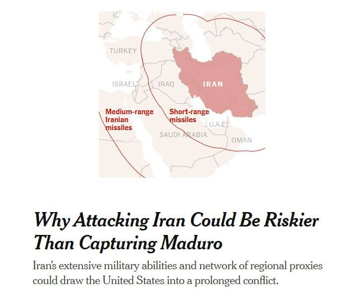 New York Times пише про серйозні проблеми для США у разі операції проти Ірану, наголошуючи на різницю у ситуації з Венесуелою.