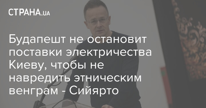 Будапешт не зупинить постачання електрики Києву, щоб не нашкодити етнічним угорцям - Сійярто